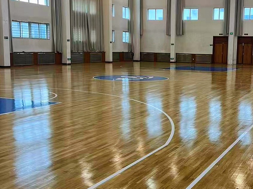在此基础上,施工进入关键的涂装阶段。团队严格依照技术规范,分别涂刷水性环保底漆与高强度耐磨面漆。每一道涂层确保漆膜均匀、无漏涂、最终形成兼具防滑性、抗磨性的保护层。这一过程不仅提升了视觉质感,更从根本上延长了场地使用寿命,保障长期安全使用。