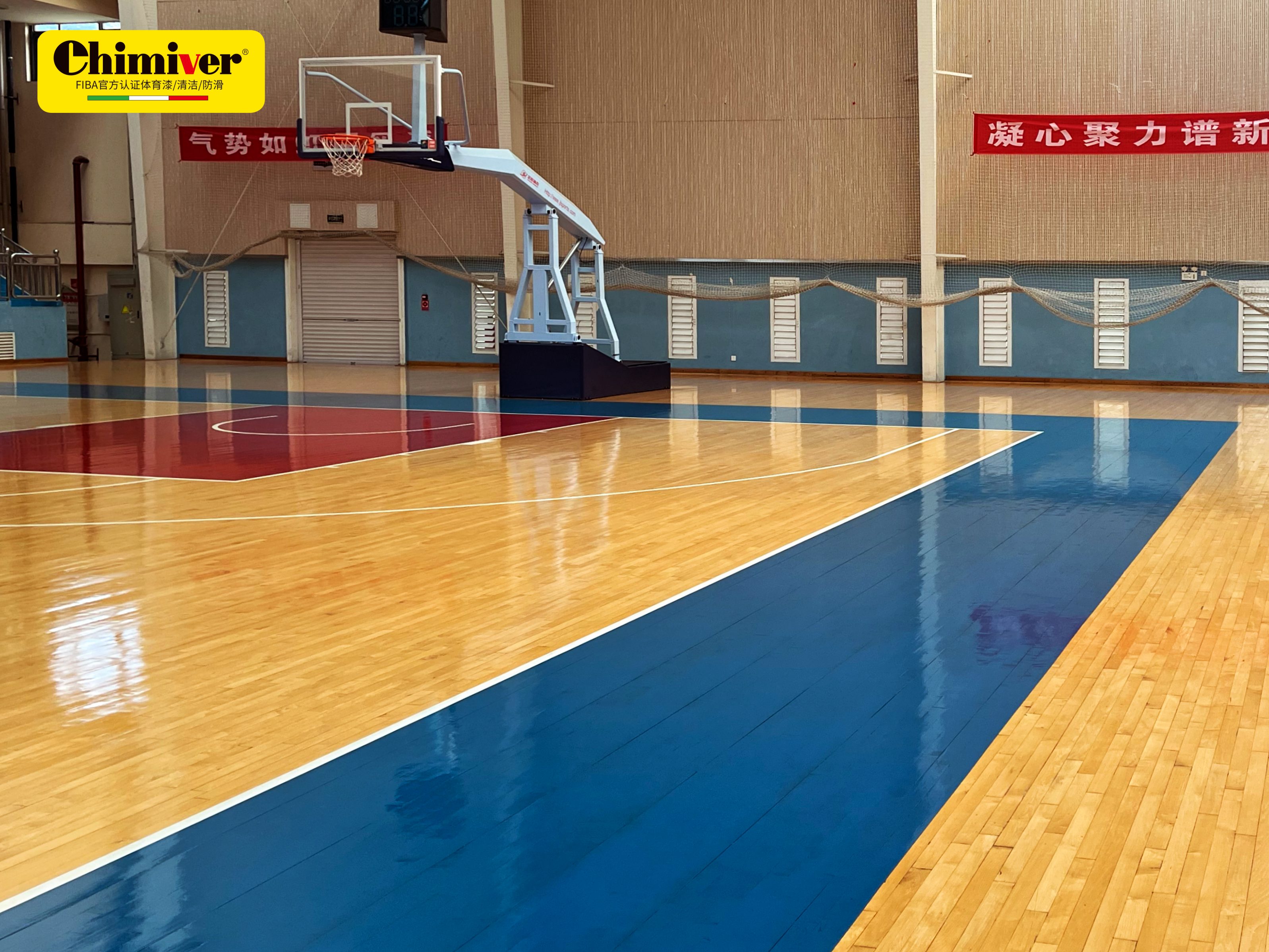 产品不仅防滑持久,更兼具高耐磨性与优异光泽感。即便在国家队高强度使用下,漆膜仍能有效抵抗鞋底摩擦,避免快速起毛、泛白或失光。涂装完成后,场地表面光洁如新,视觉通透,既提升空间质感,又强化运动员对地面的感知反馈,助力技术动作精准执行。
